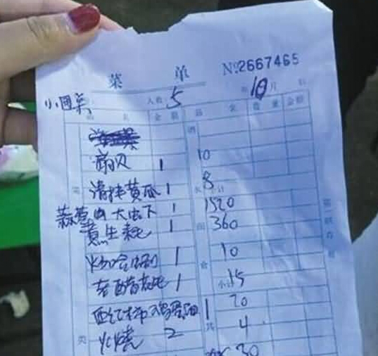遇到天價菜單可投訴報警